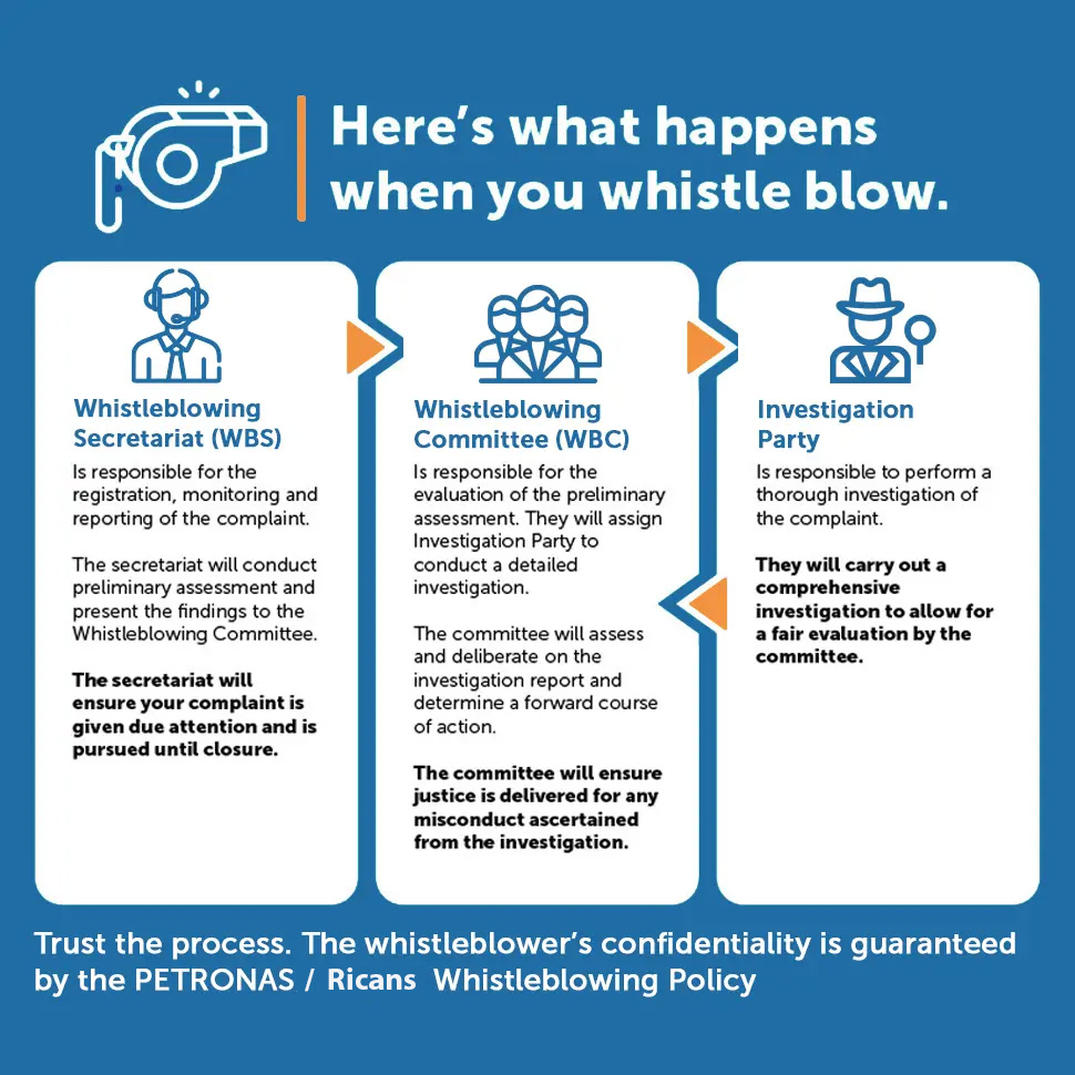 Such protection is given even if it turns out that the whistleblower was wrong about the facts and the relevant rules and procedures after further examination. For more info, kindly refer to Ricans Whistleblowing Policy